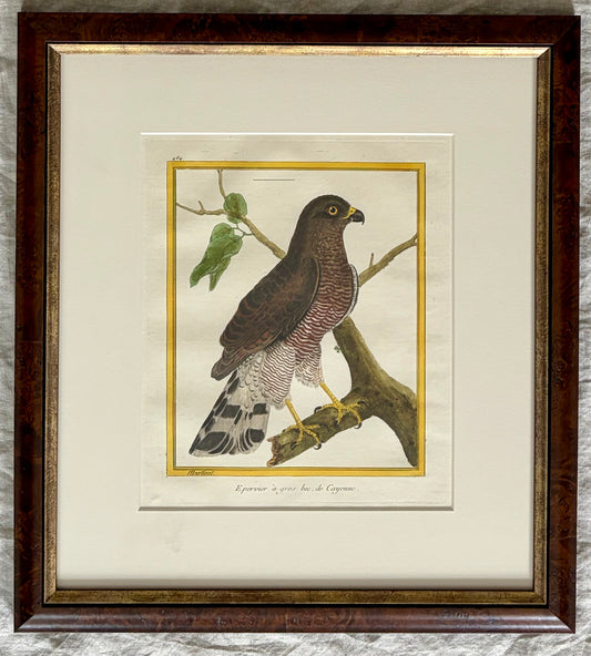 Framed Hand Colored Engraving of a Sparrowhawk by Martinet & Buffon