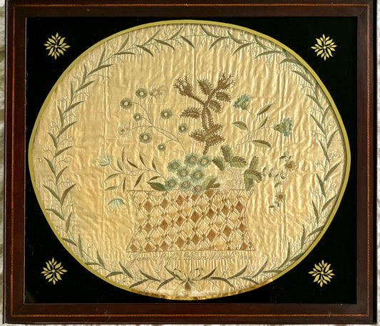Early 19th Century Silk Embroidery of a Basket of Flowers