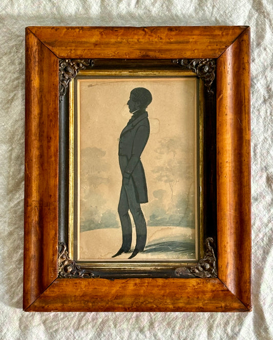 19th Century English Silhouette of a Gentleman in Ink and Watercolor