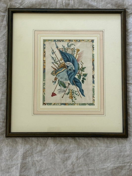 English 19th century Framed Watercolor of Military Attributes