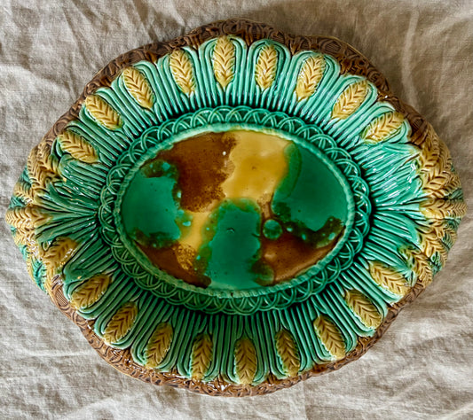 Tortoiseshell Glaze Majolica Wheatsheaf Bread plate