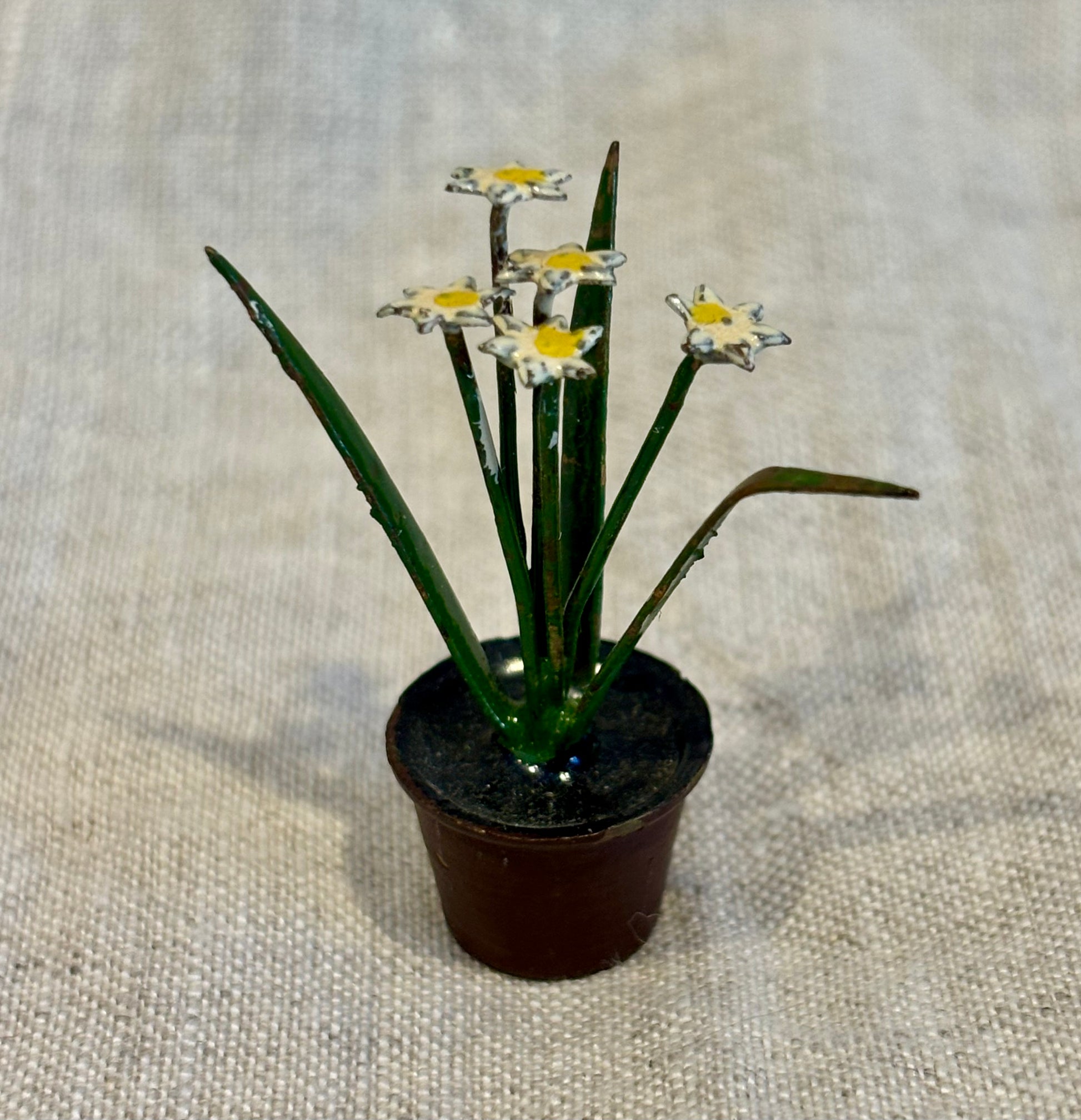 Tiny hand painted bronze model of paper whites in a terracotta pot. Just adorable!