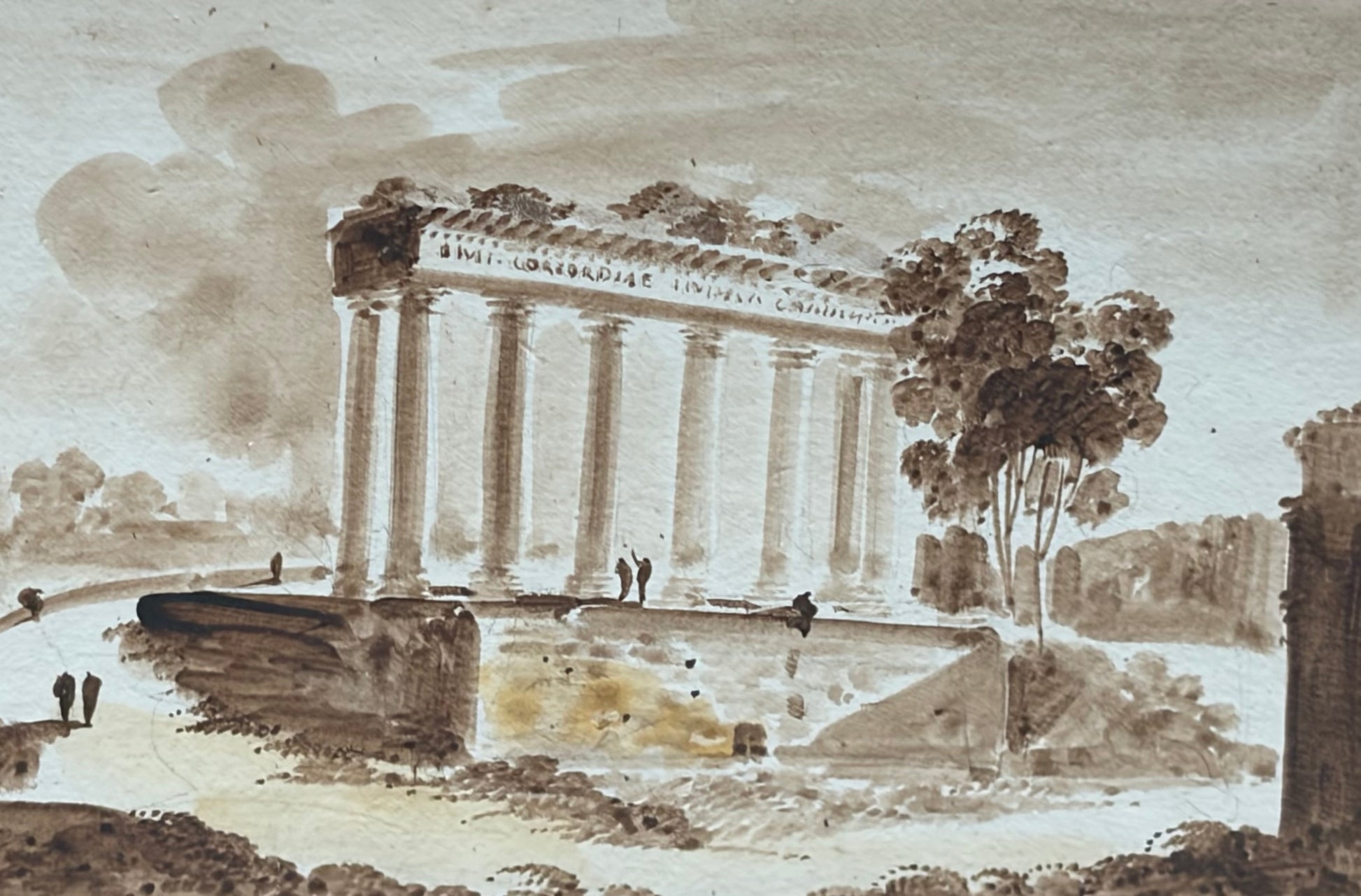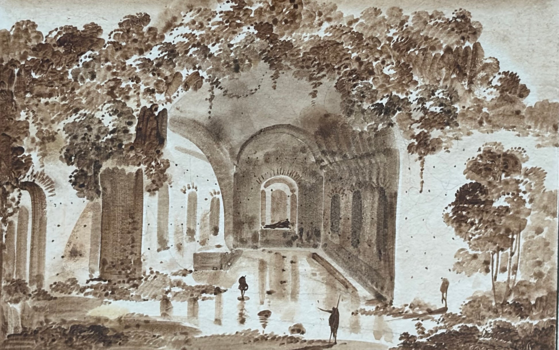 Set of Four Grand Tour Grisaille Watercolors of Rome